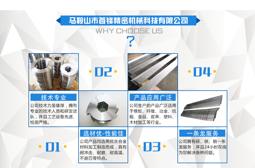 - 主打產(chǎn)品 : 剪板機刀片 圓刀片 折彎機模具 硬質合金(鎢鋼)刀片 分條機刀片 撕碎機刀片